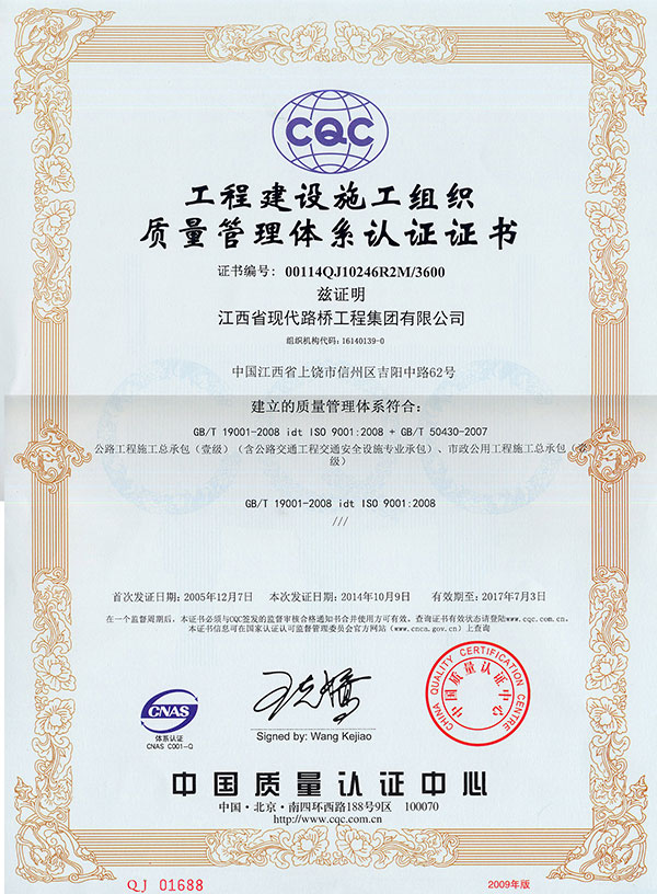 质量管理认证证书